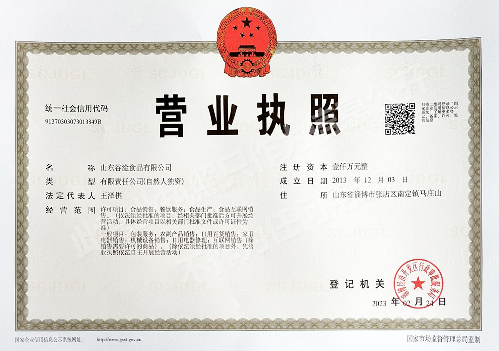 地址:山東省淄博市張店區中德國際大廈7樓谷淦食品營銷中心